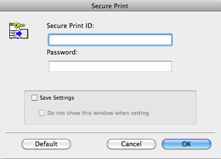 Data printed using the Secure Print function is saved in the Secure Print User Box. To print the saved data, you need to enter the ID and password specified in the printer driver.