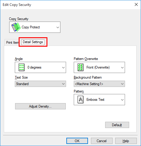 [Adjust Density...] | Adjust the density of the copy security pattern. |