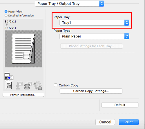 In [Paper Tray:] in [Paper Tray / Output Tray], select the paper tray for printing the body.