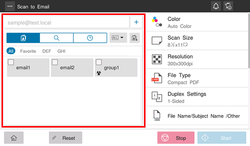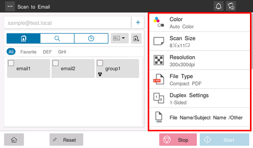 Using the Stop key enables you to stop scanning the original. A list of the currently stopped jobs is displayed. To stop transmission, select the target job from the list, and delete it.