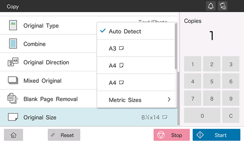 Select the size of the original to be scanned.