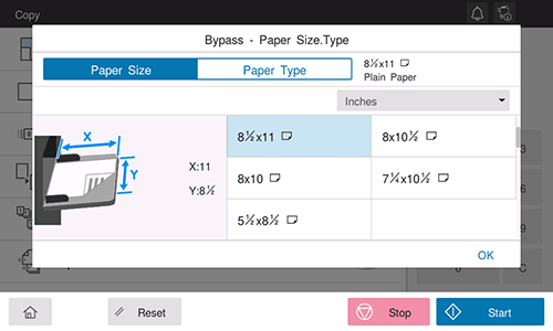 [Inch Sizes]: Specify the inch size of paper.
