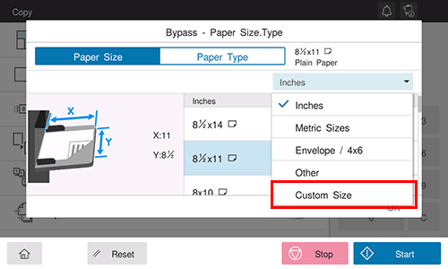When loading custom-sized paper, directly enter the length and width of paper.
