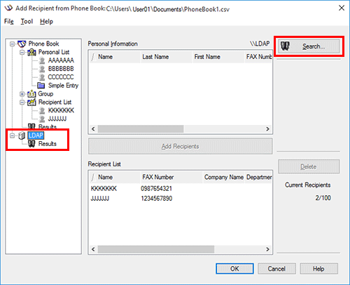 If you are using the LDAP server or the Active Directory of Windows Server, you can search for a recipient on the server.