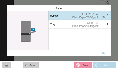 The available paper type varies depending on the paper tray, so the displayed screen is different.