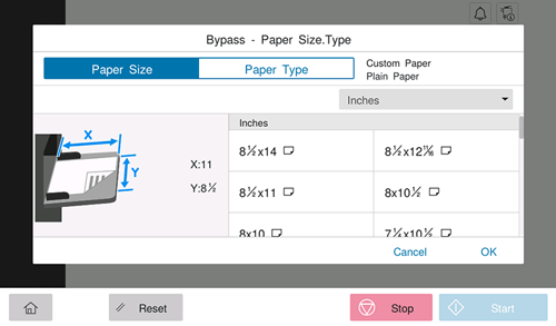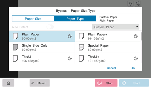 Setting [Auto Detect] to ON automatically detects the size of the loaded paper (only for the optional Paper Feed Unit).