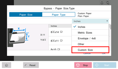Tap [Custom Size] from the drop-down list of [Paper Size].