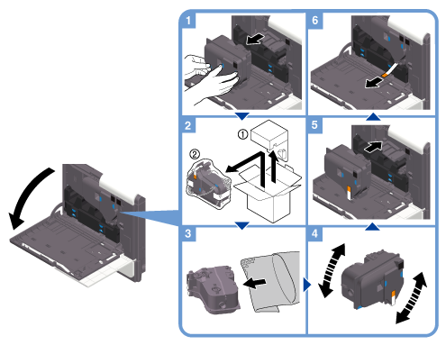 Shake a new Toner Cartridge well, approximately 5 to 10 times up and down, front and backwards, and left and right.
