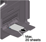 Load envelopes or postcards into the Bypass Tray or Tray 1, then specify the paper type and paper size.