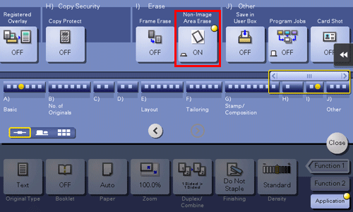 Tap [Application], select [Non-Image Area Erase], then select [ON].