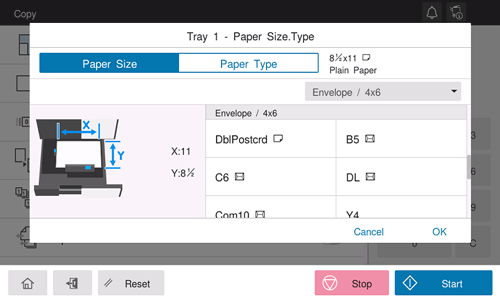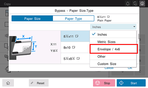 Various sizes of envelopes are available. Specify the correct paper size for the envelopes you have loaded. When the envelope size is specified, the paper type is automatically set to [Envelope].