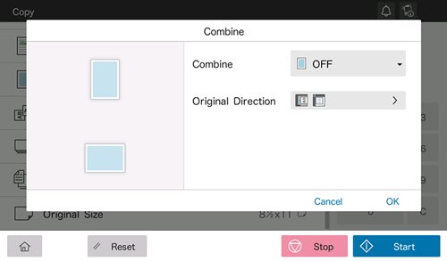 In [Combine], select the number of pages to copy on the same side of a single sheet.