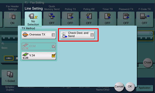 Set [Check Dest. and Send] to ON, and tap [OK].