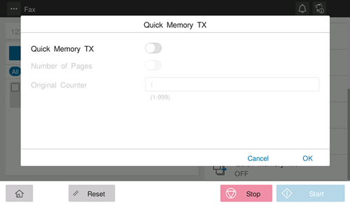 Quick Memory TX is a method to start sending a fax as soon as one page of the original has been scanned. The total number of sent pages can be entered in the sender record.