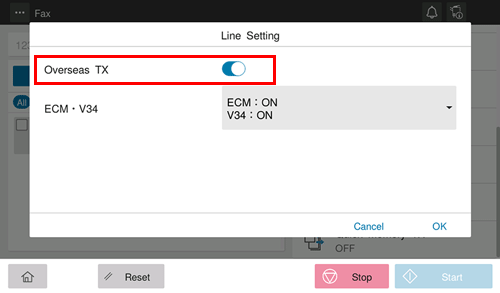 Set [Overseas TX] to ON, and tap [OK].