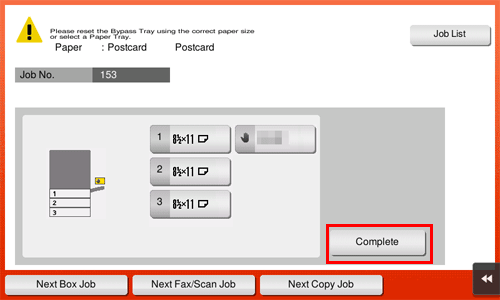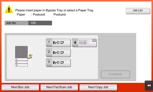 For example, by using the print command once, you can print a submission document on high-quality color paper loaded in Tray 1 and print your copy on recycled paper loaded in Tray 2.