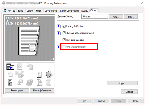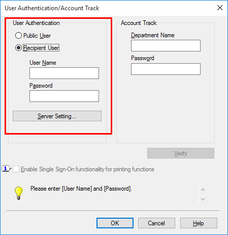 If your computer can communicate with this machine, clicking [Verify] executes authentication based on the authentication information that has been input. You can check the authentication information for errors before starting printing.