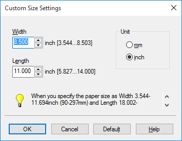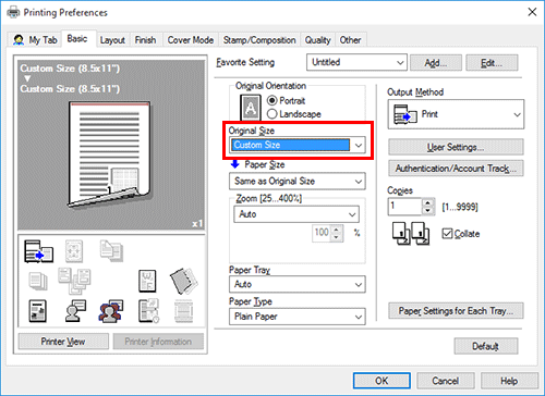 In [Original Size] in the [Basic] tab, select [Custom Size].