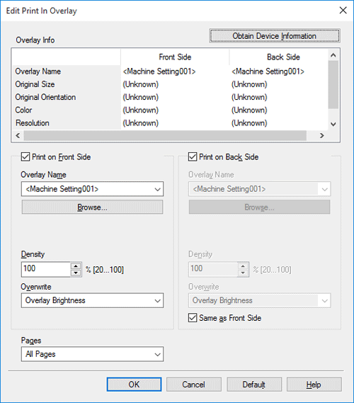 When printing images on both sides, selecting the [Same value for Front and Back sides] check box applies the same settings to both sides.