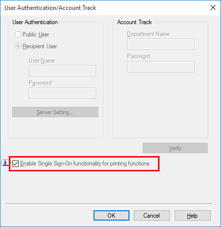 Check [Enable Single Sign-On functionality for printing functions] box, and click [OK].