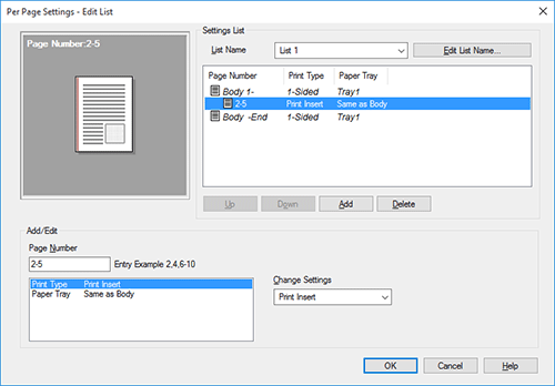 [Page Number] | Enter the page numbers you want to add. To specify multiple page numbers, separate each number with a comma (for example, "2,4,6") or connect the numbers using a hyphen (for example, "6-10"). | |