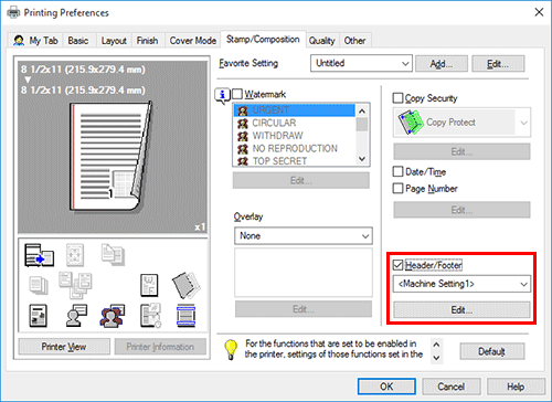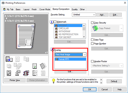 In the [Stamp/Composition] tab, select the [Copy Security] check box, and then select [Copy Protect].