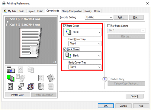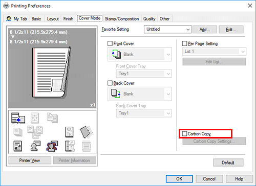 In the [Cover Mode] tab, select the [Carbon Copy] check box.