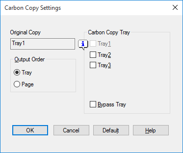 [Carbon Copy Tray] | Select the paper tray for carbon copies. Select the check boxes for all paper trays to be used. |