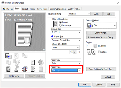 In [Paper Type] in the [Basic] tab, select the type of paper for printing.