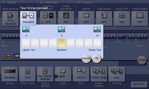 [Background Removal] | Copies a thin 2-sided original or an original with a colored background, at the optimum level of image quality.