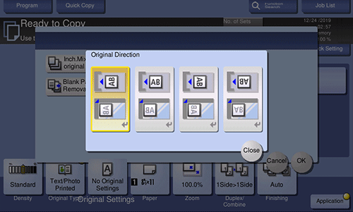 When scanning a 2-sided original, specify the original loading direction so that the vertical direction of the scanned original is set correctly.