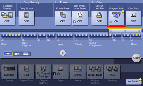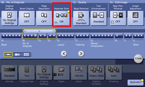 Scans each loaded original with different settings, and makes copies collectively. Use this function when various types of originals are mixed, such as 1-sided original to be printed on one side of paper, and 2-sided original to be copied by enlarging.