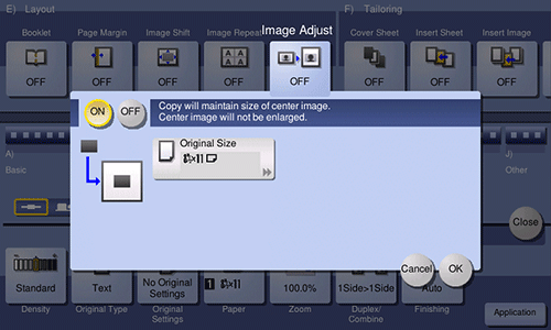 [Minimal] | Places an original image in the center after slightly reducing the original size when copying. Select this option when copying the entire original image, including its edges. |