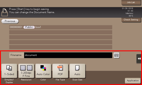 Enable the Share SMB File function, and also enable the Auto document registration to MFP Shared Folder function for the Public User Box.