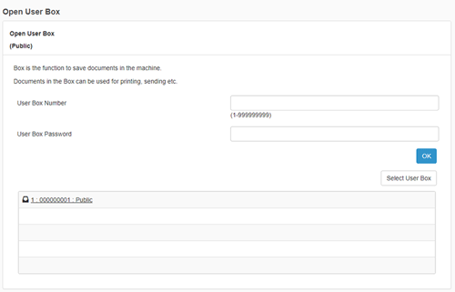 You can also open a desired User Box by entering its number directly in the [User Box Number] column.