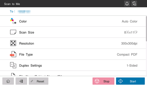 Selecting [Scan to Me] on the home screen allows you to easily send an E-mail only to you.