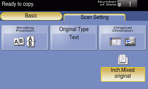 Select [Scan Setting] - [Inch.Mixed original] to configure settings.