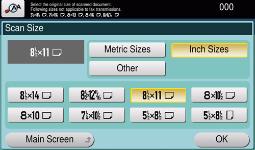 [Other] | Select this option to scan a postcard (4 e 6 or A6 card) or an original other than a metric- or inch- size original. Tapping [Other] enables you to select each standard size. |