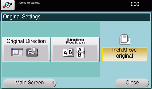 Select [Scan Settings] - [Original Settings] - [Inch.Mixed original] to configure settings.