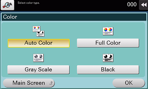[Auto Color] | Automatically determines [Full Color] or [Gray Scale] to fit the original color when scanning the original. |