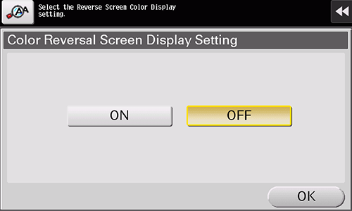 Select [Accessibility] - [Color Reversal Screen Display Setting] to configure settings (default: [OFF]).