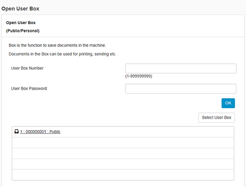 You can also open a desired User Box by entering its number directly in the [User Box Number] column.