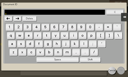 When simple printing for secure print document is enabled, select the target document ID from the document ID list. For details on the simple printing, refer to Enabling simple printing for secure print document (for the administrator).