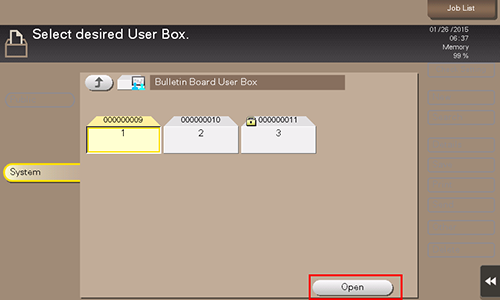 If the target User Box is protected using the password, tap [Open], and enter the password.