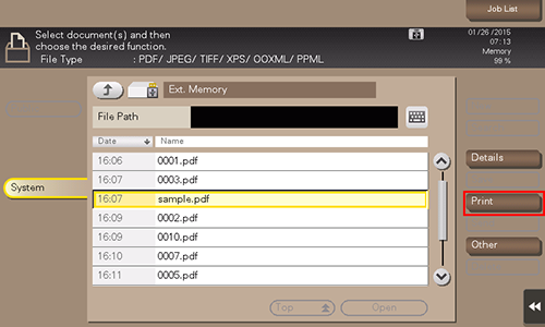 You can also perform the same operation by tapping [System] - [External Memory] in User Box mode.