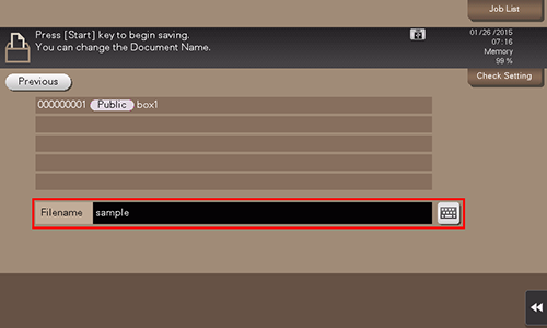 A password-protected PDF file is stored in the Password Encrypted PDF User Box. For details on how to operate a file saved in the Password Encrypted PDF User Box, refer to Printing/Saving a File in a User Box.