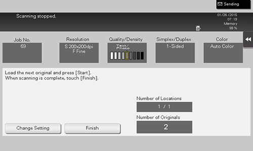 If necessary, tap [Change Setting] to change the option settings according to the new original.