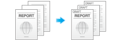 A text such as "PLEASE REPLY" or "DO NOT COPY" is printed on the first page or all pages. You can select the text to be added from the registered fix stamps and arbitrary registered stamps.