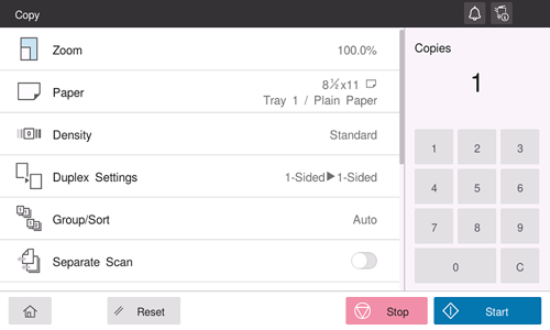 Using the Stop key enables you to stop scanning the original. A list of the currently stopped jobs is displayed. To cancel copy, select the target job from the list, and delete it.