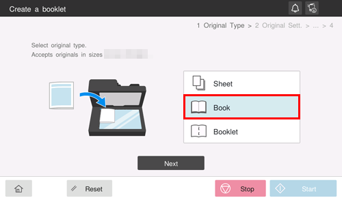 The opening direction of the selected book original is the same as that of the booklet to be created.